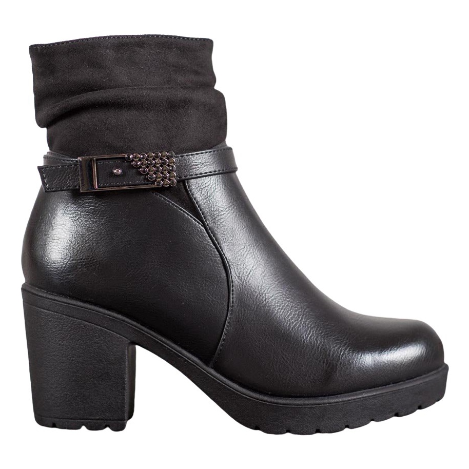 Otkrijte eleganciju i udobnost uz crne SHELOVET gležnjače s kopčom koje savršeno nadopunjuju svaki ženski stajling. Izrađene od visokokvalitetne ekološke kože i antilopa, ove čizme ne samo da izgledaju elegantno, već osiguravaju i udobnost vašim nogama.