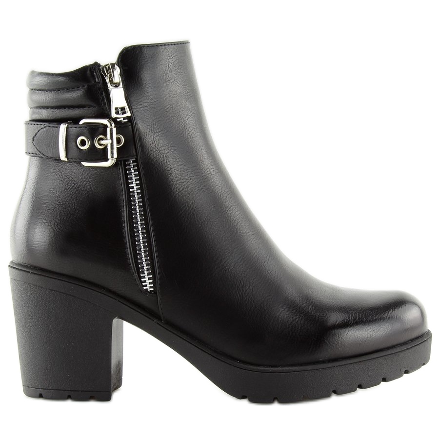Crna boja i glatka završna obrada čine univerzalni duo u koji možete lako odabrati razne odjevne predmete. Ukrasni srebrni patentni zatvarač s kopčom upada u oči i daje jedinstveni karakter obući. Štoviše, praktični patentni zatvarač sa strane jamči brzo i udobno obuvanje, što ćete cijeniti u svakodnevnoj žurbi.