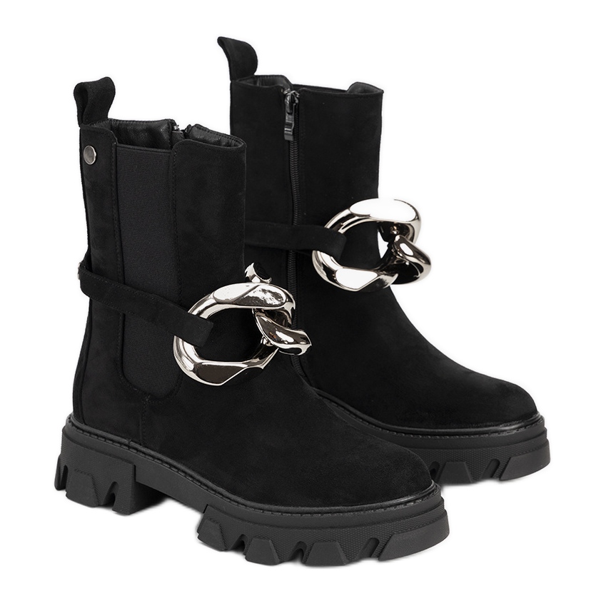 Pojedinosti: Crne čizme sa zlatnim lancem iz Garea crna