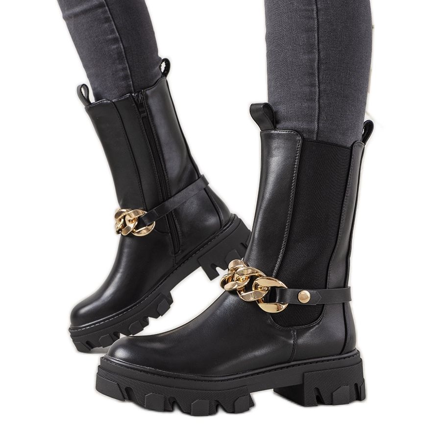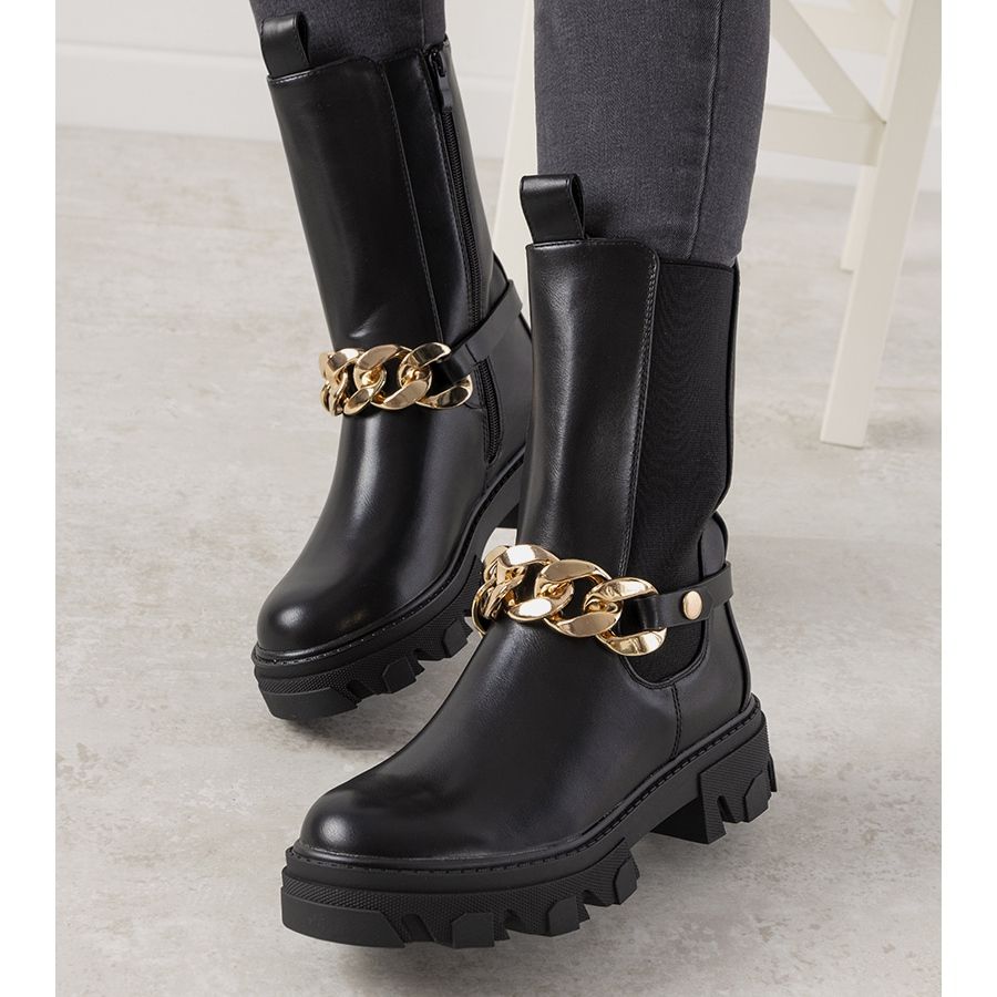 Pojedinosti: Crne čizme sa zlatnim lancem iz Luce crna