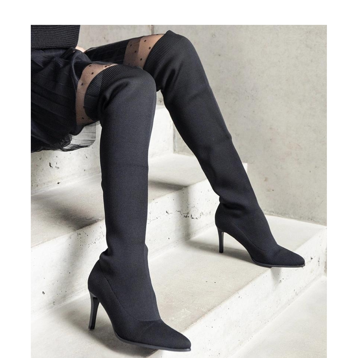 Crne čizme slip-on na visoku petu s elastičnim gornjim dijelom crna