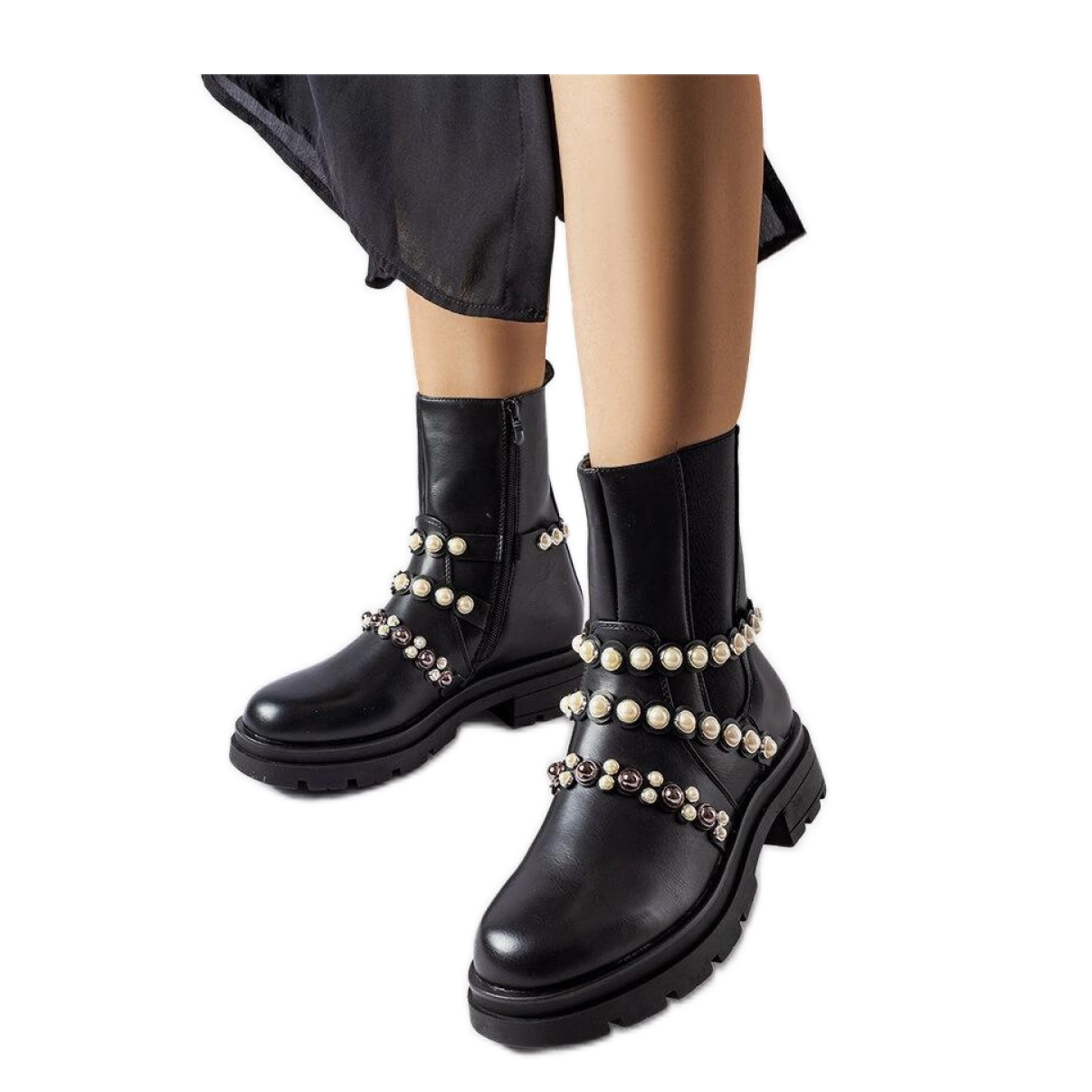 Pojedinosti: Crne čizme ukrašene biserima crna