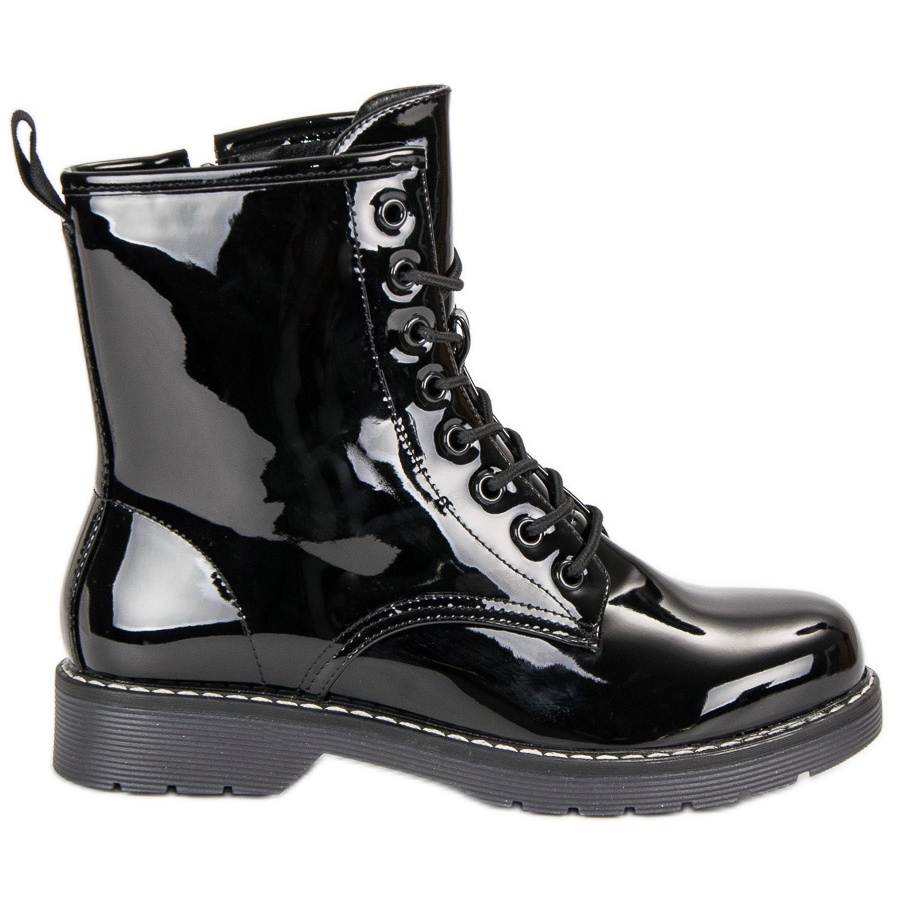 VINCEZA crne bovver čizme izvrsna su obuća koja će se sigurno svidjeti svim ljubiteljicama modernog stila. Izrađene od lakirane ekološke kože, ove cipele s visokim gornjištem savršeno se uklapaju u jesenske i zimske trendove. Njihovo praktično vezivanje i bočni patentni zatvarač olakšavaju ih obuvanje i prilagođavanje stopalu.