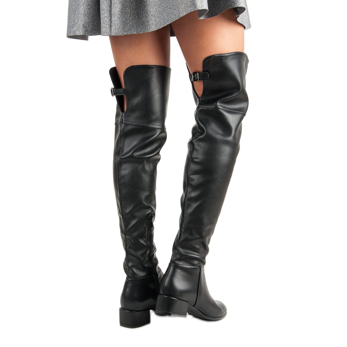 Pojedinosti: Crne čizme za bedra na niskim potpeticama crna