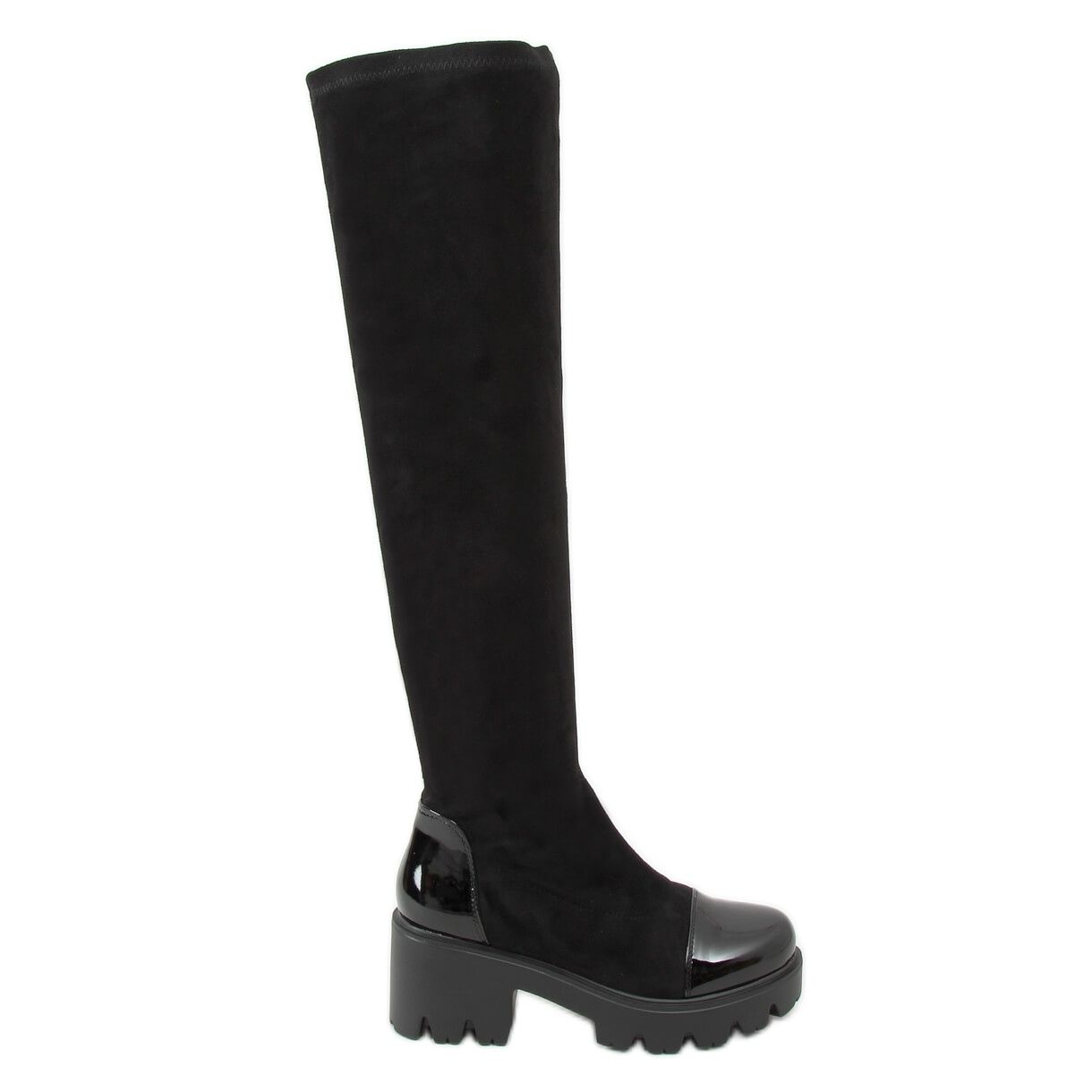 Crne čizme za bedra s debelim potplatom CH19209 Crna