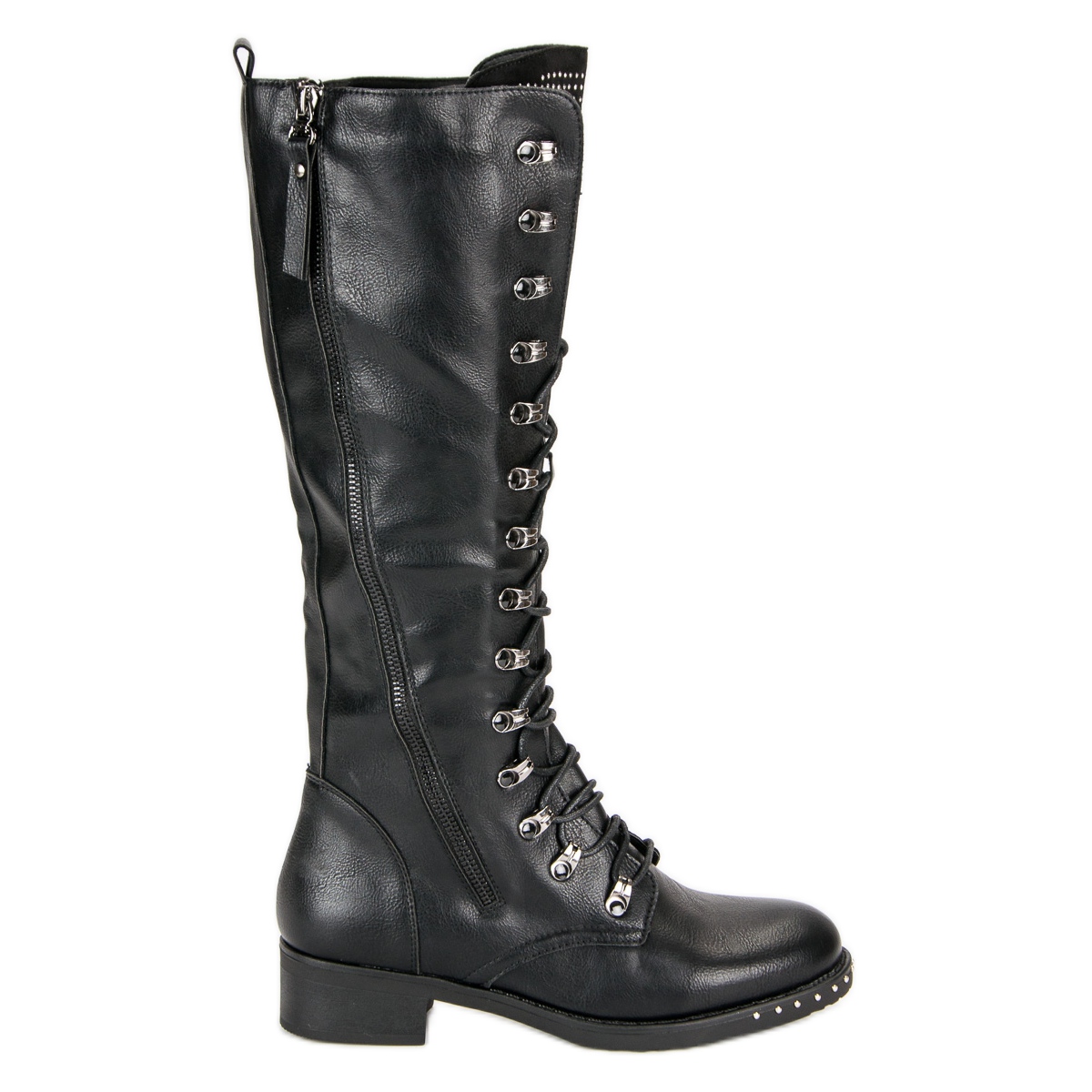 Njihov klasični oblik u kombinaciji s elegantnom crnom bojom čini ove čizme uspješno nadopunjujućima elegantan, ležeran i rock stil. Rhinestones smješteni ispod vezica i na potplatu daju im odvažan karakter, čime se ističete iz gomile.