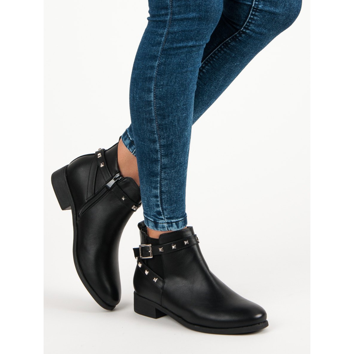 Crna boja, ukrasna kopča i kamenčići daju čizmama jedinstven karakter koji se savršeno uklapa u aktualne trendove. Bočni patentni zatvarač i elastične trake čine obuvanje i izuvanje udobnim i brzim.