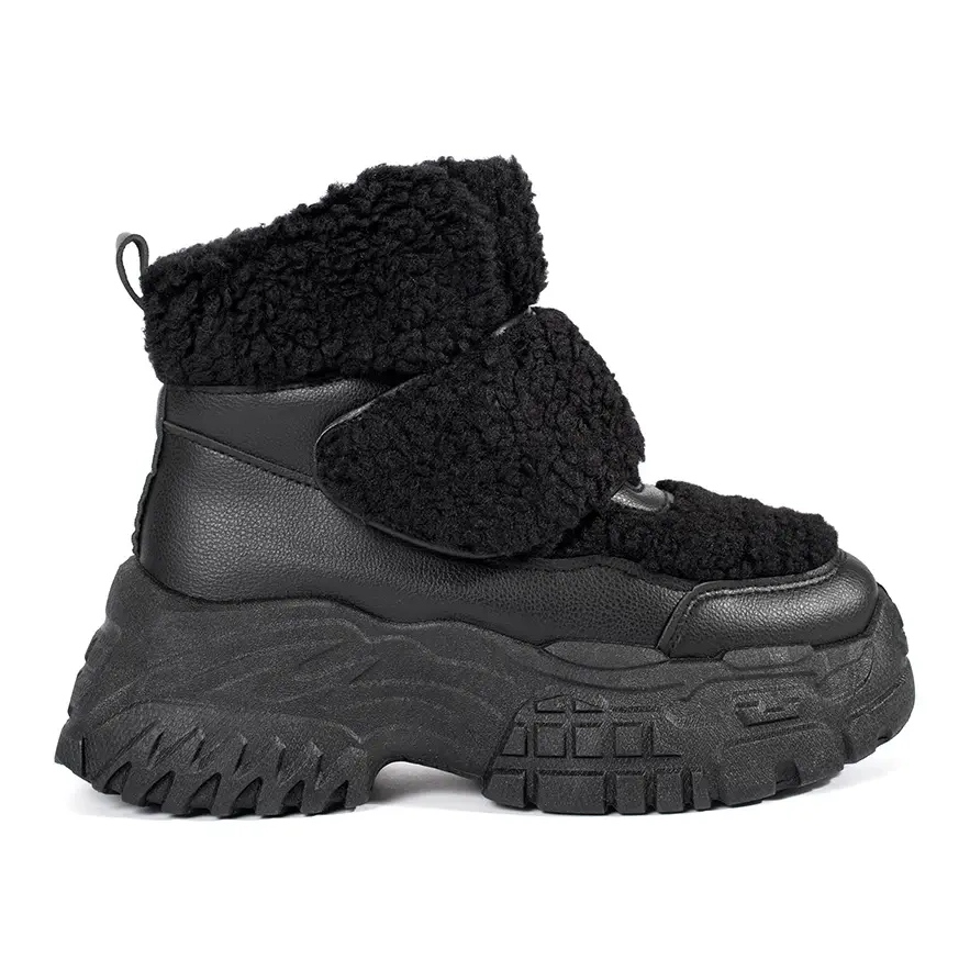 Upoznajte SEASAR crne čizme snijega na platformi s janjećim krznom - savršena obuća za hladne dane! Ove elegantne i udobne snježne čizme, dizajnirane za žene, kombiniraju moderan dizajn i funkcionalnost koji će raditi u svakodnevnim stilizacijama.
