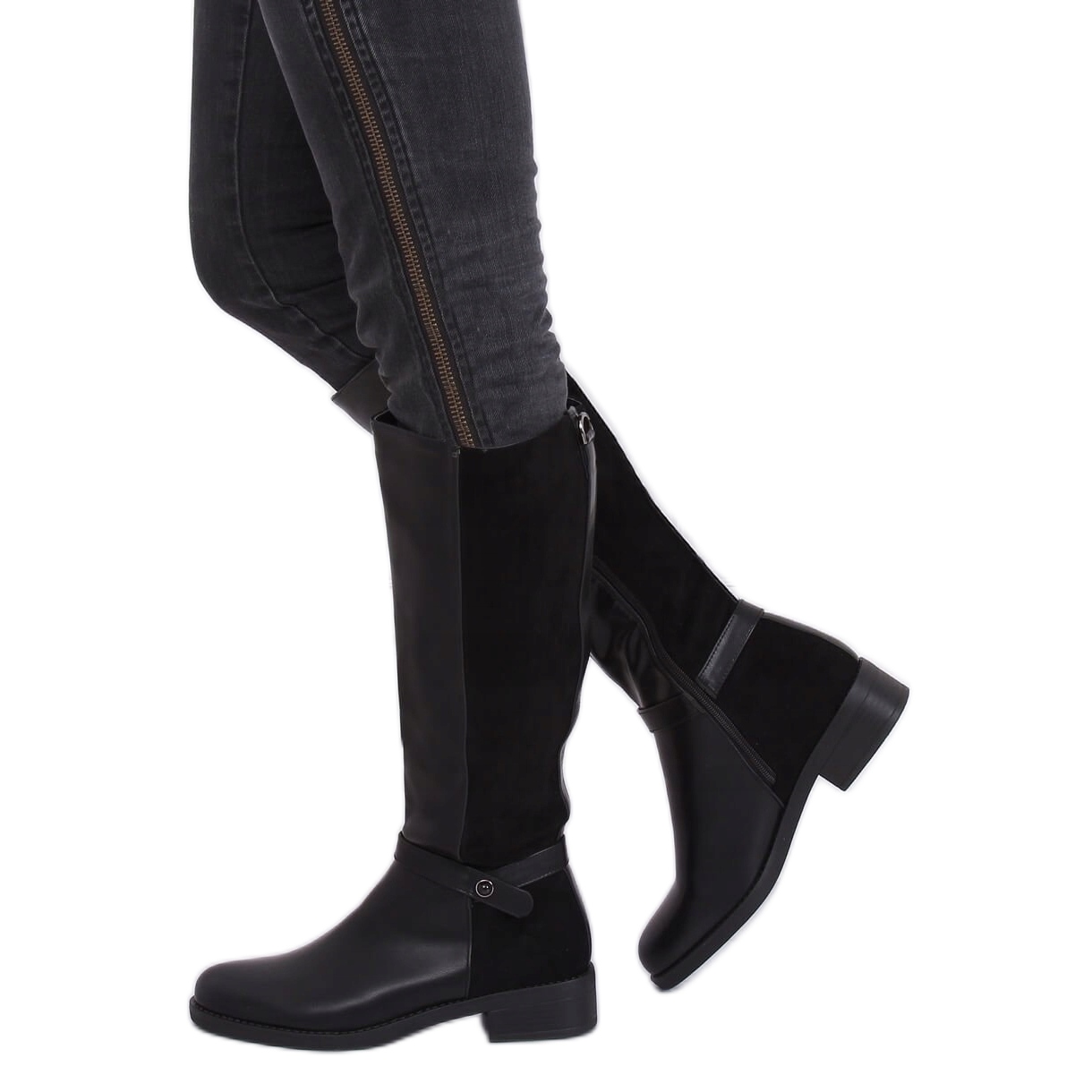 Čizme su izrađene od visokokvalitetnih materijala - kombinacija punozrnate ekološke kože i ekološke brušene kože, zbog čega izgledaju impresivno i ugodne su na dodir. Suptilni ukras na gležnju dodaje karakter, a praktični patentni zatvarač sa strane osigurava lako obuvanje i skidanje, što ih čini iznimno udobnima u svakodnevnoj uporabi.