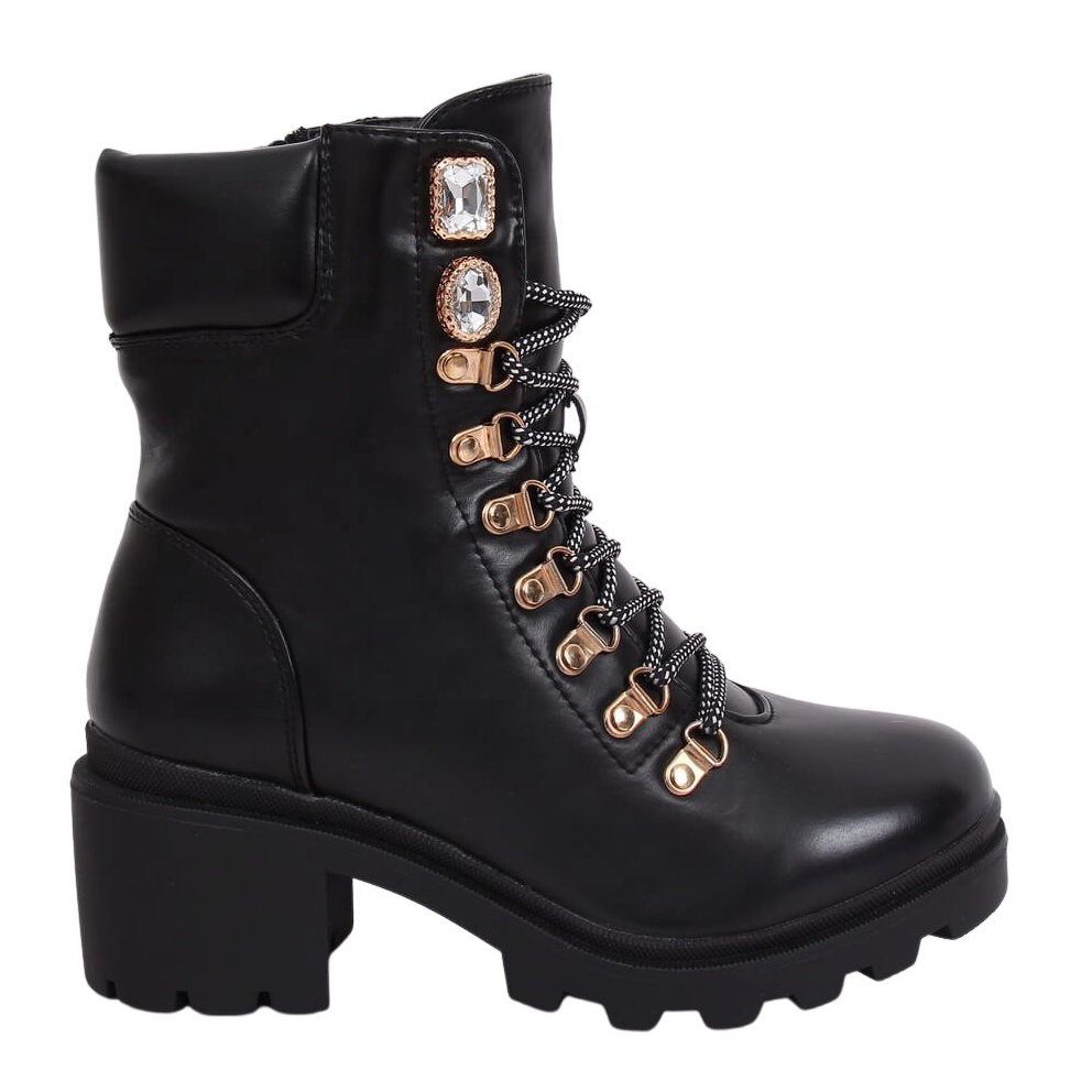 Otkrijte najnoviji hit sezone - ženske crne bovver čizme HE110 Black koje savršeno nadopunjuju svaki svakodnevni stajling. Ove izuzetno moderne radničke cipele sa širokom petom visine 6 cm spajaju udobnost i jedinstven stil. Njihov izvorni karakter naglašen je zlatnim vezicama s kontrastnim vezicama koje svakom looku dodaju energiju, a sjajni kamenčići na vrhu gornjeg dijela mame poglede i daju jedinstveni sjaj.