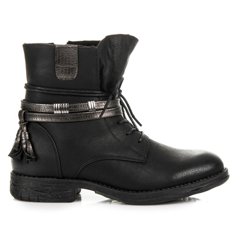 Crna boja ovih čizama čini ih univerzalnima i savršeno pristaju uz razne stilove, kako ležerne tako i elegantnije. Dodatno, ukrasna kopča i resice daju zanimljiv akcenat, ističući boho stil obuće.