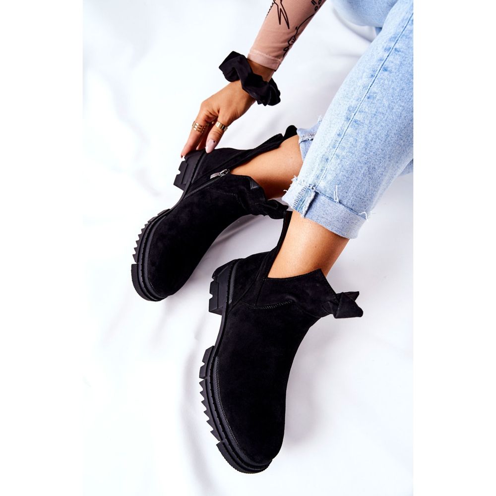 Otkrijte modu i udobnost u jednom od najnovijih modela gležnjača iz POTOCKI! Crne gležnjače s patentnim zatvaračem savršen su izbor za svaku elegantnu ženu. Izrađene od visokokvalitetnog eko antilop kože, nude ne samo elegantan izgled, već i užitak nošenja. Njihova unutrašnjost, izolirana pokrivačem za cipele, čini ih savršenim za hladnije dane, pružajući toplinu i udobnost.