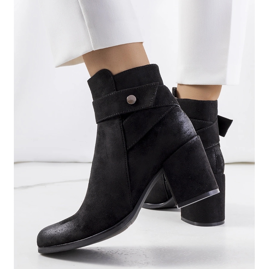 Black Craydon čizme - elegantne i udobne za hladnije dane. Asimetrični gornji doseg do gležnja, malo izdužen sprijeda, stvara moderan naglasak u svakodnevnim stilizacijama. Napravljeni od Ekozamsza, s osjetljivim zagrijavanjem (obuća pokrivača), pružit će udobnost i zaštitu od hladnoće. Dekorativna traka eko -odlaska na gležnju s imitacijom srebrnog zasuna dodaje karakter, a praktični učvršćivač zatvarača olakšava umetanje. Stabilan klip s visinom od 7,5 cm lijepo modelira lik, bez odustajanja od udobnosti.