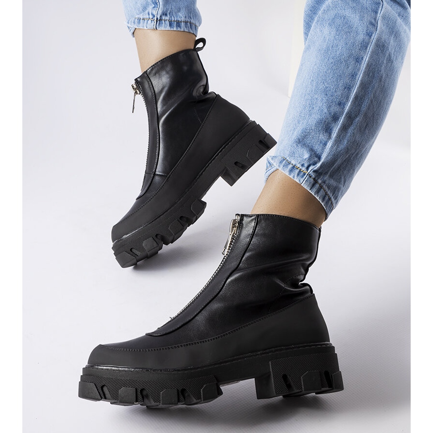 Crne masivne gležnjače s Morley patentnim zatvaračem - elegantna i praktična obuća za modernu ženu
