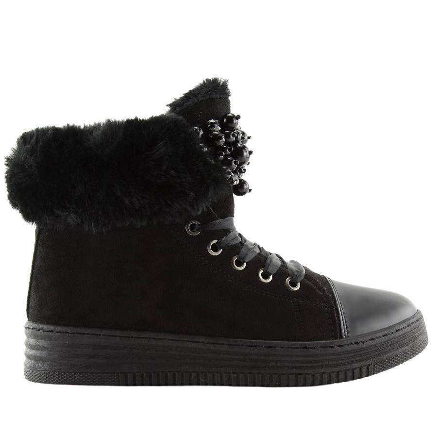 Izrađene od ekološkog antilopa i ekološke kože, tenisice pružaju izvrsnu izdržljivost. Unutrašnjost izolirana mekim, gustim krznom čini vaša stopala uvijek toplim i ugodnim, čak iu najhladnijim danima. Korištenje ukrasnih aplikacija od bisera i kamenčića na jeziku daje im jedinstven karakter, a elegantno krzno oko gornjeg dijela naglašava njihov elegantan izgled.