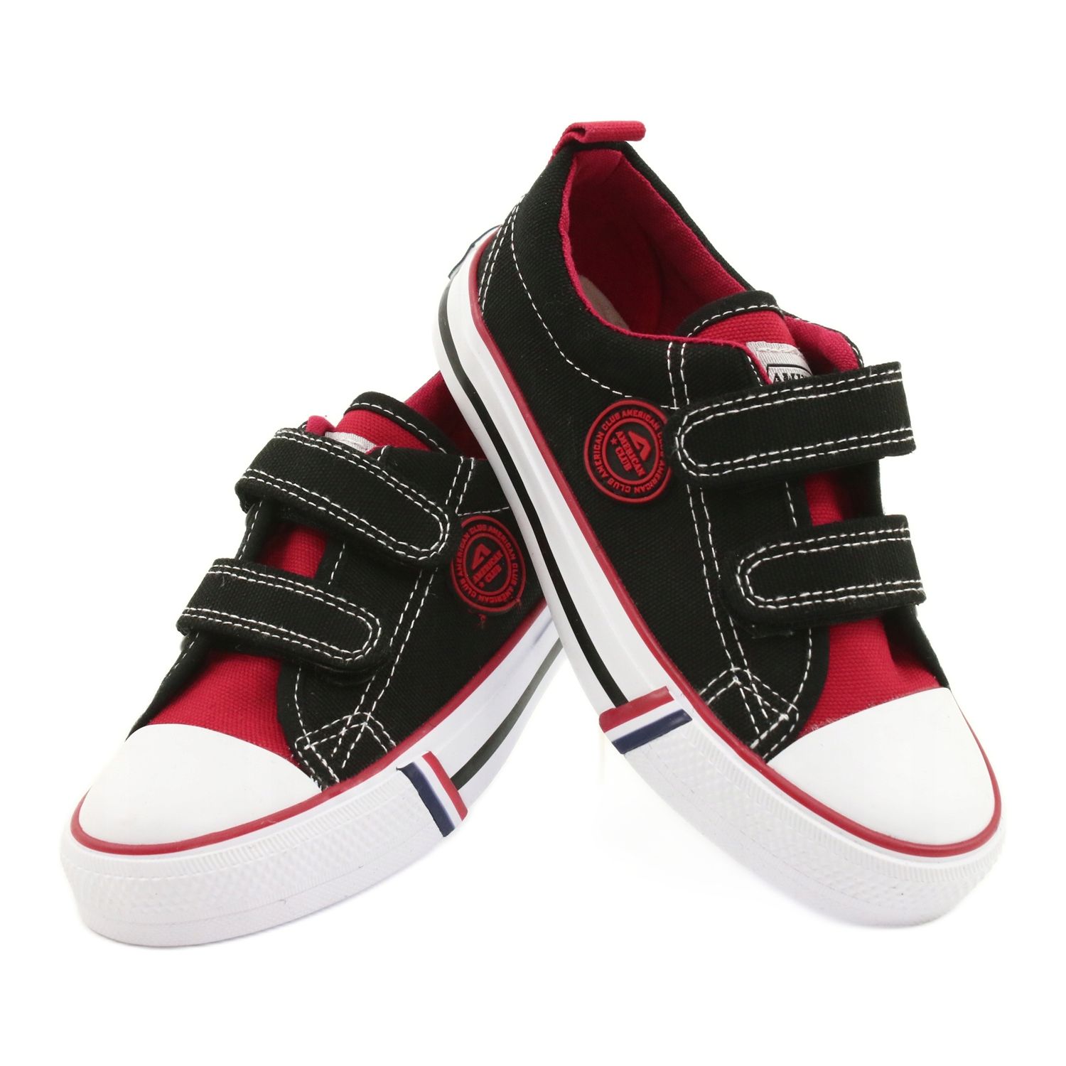 American American Club LH62 dječje tenisice na čičak - crne s crvenim detaljima