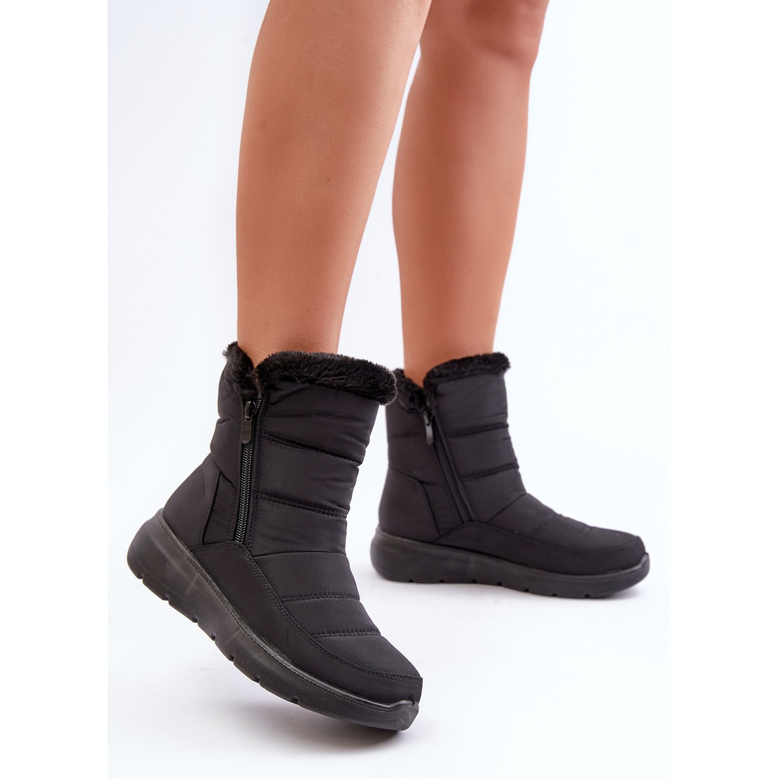 Pojedinosti: Crne Dritane ženske čizme za snijeg s patentnim zatvaračem i krznom crna