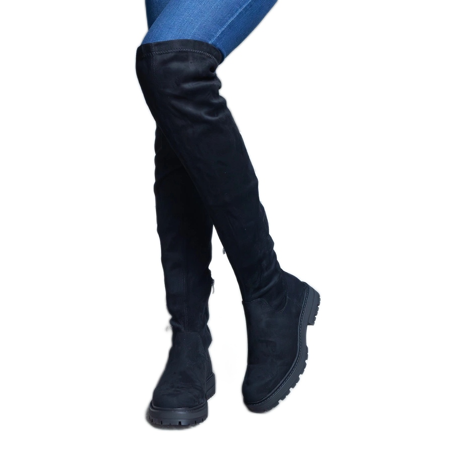 Crne duge čizme s fleksibilnim gornjištem i ravnim potplatom crna