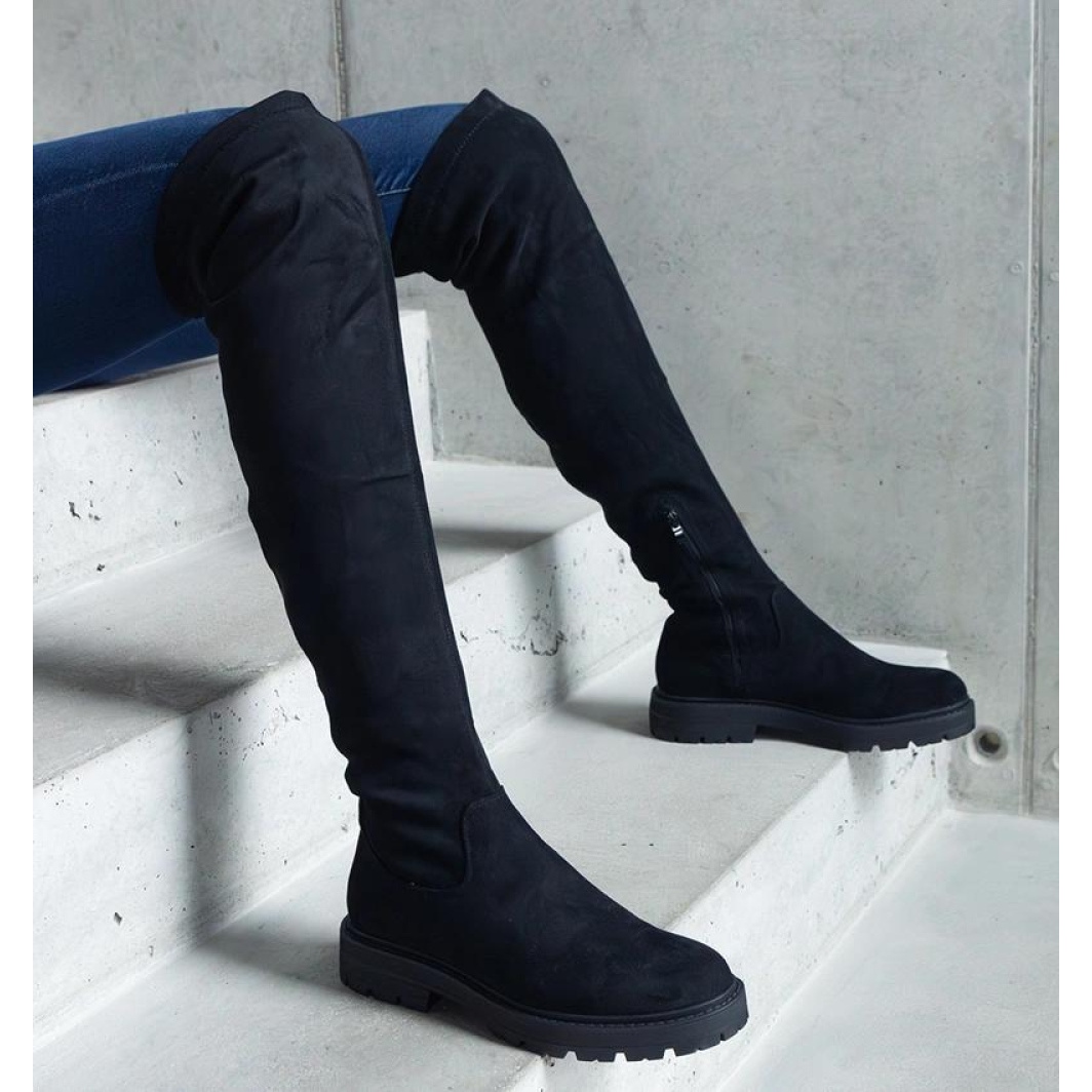 Crne duge čizme s ravnim potplatom Tromi - Solea crna