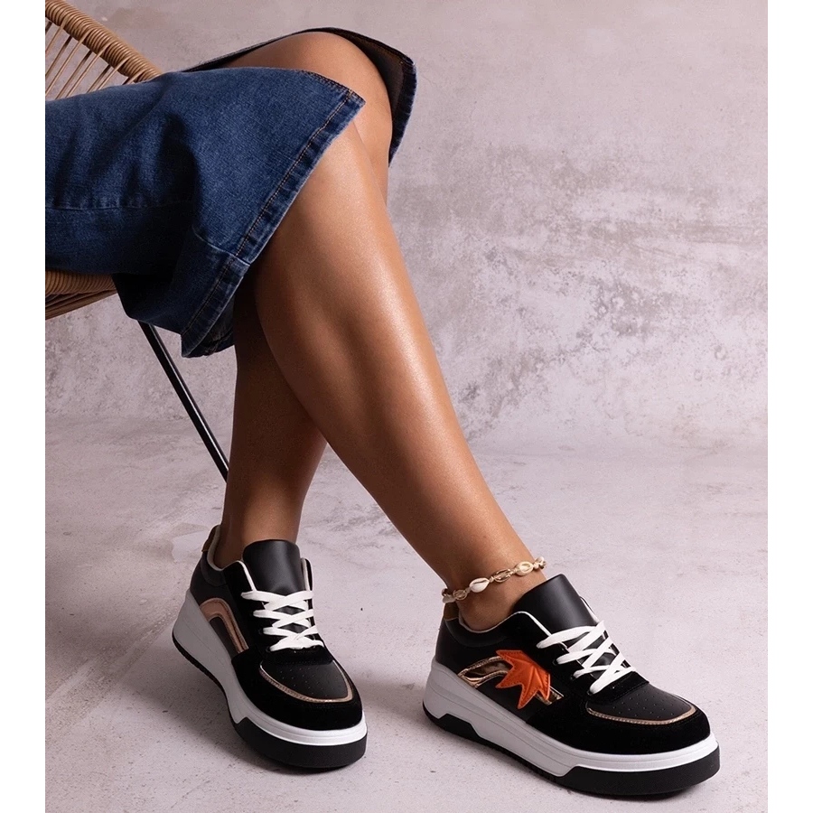 Crne tenisice Eco Suede Kollins od proizvođača D/GMR do obaveznih ove sezone za svaku modnu ženu! Ove elegantne cipele kombiniraju jedinstveni dizajn s udobnošću, zahvaljujući visokom potplatu, koji ne samo dodaje nekoliko centimetara, već također pruža odlično jastuk tijekom hodanja.