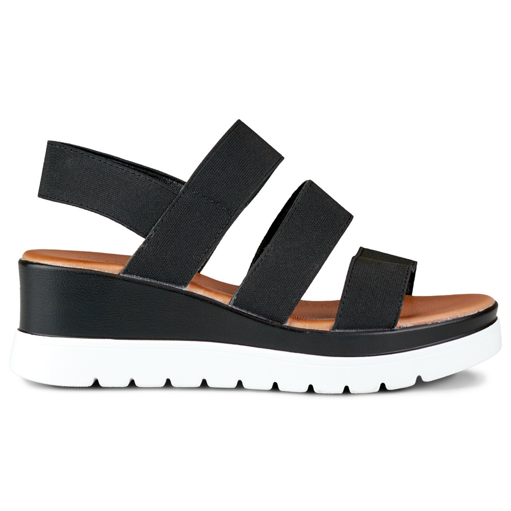Odaberite crne elastične sandale na nisku platformu i uživajte u modernom izgledu i udobnosti na svakom koraku!