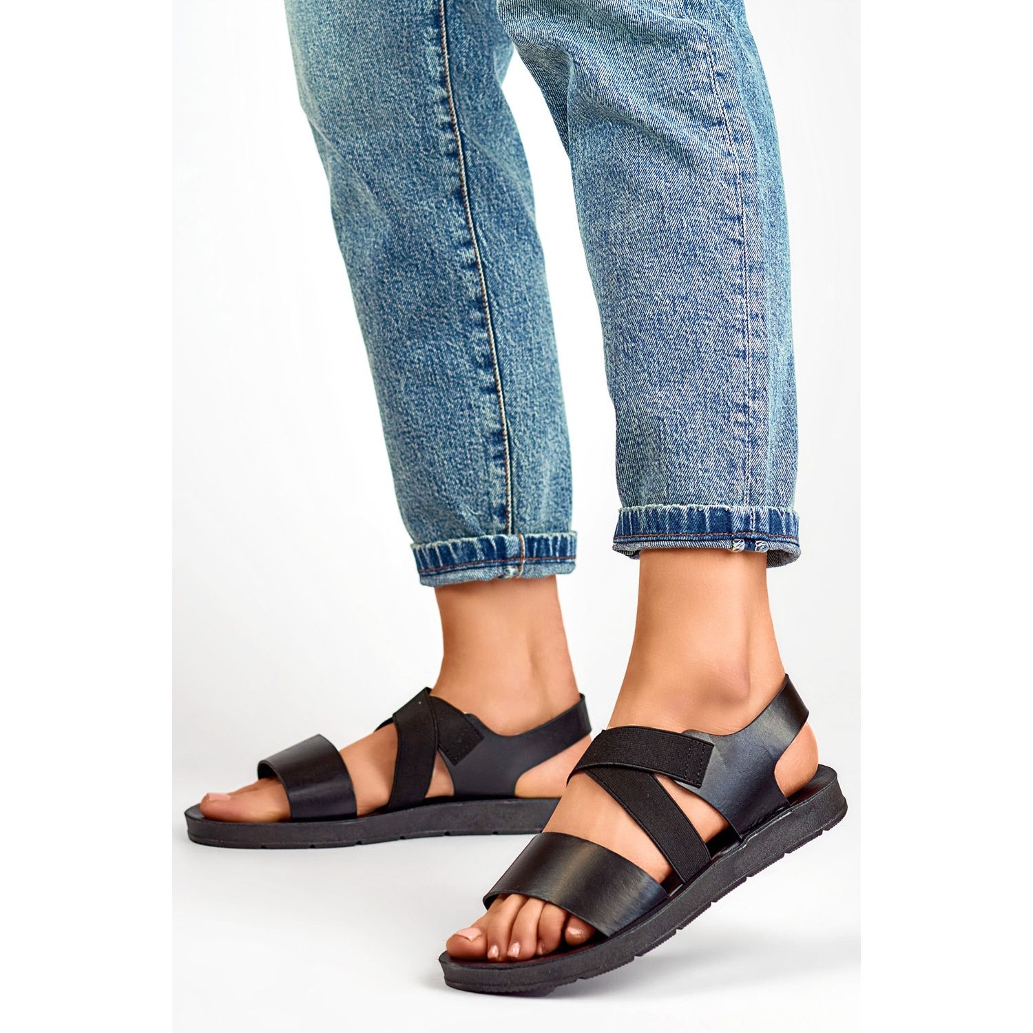 Crne elastične sandale s pripijenim gornjim dijelom i elastičnom trakom crna