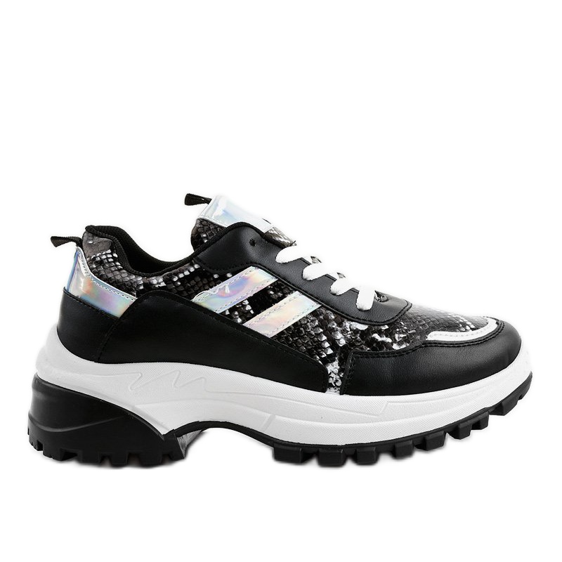Otkrijte eleganciju i udobnost u elegantnim crnim sportskim cipelama 690051. Ove izvanredne ženske cipele izrađene su od visokokvalitetnog materijala nalik koži koji učinkovito imitira zmijsku kožu, dajući im jedinstven karakter. Savršene za svakodnevnu upotrebu, savršene su kako za izležavanje u gradu tako i za sportske aktivnosti.
