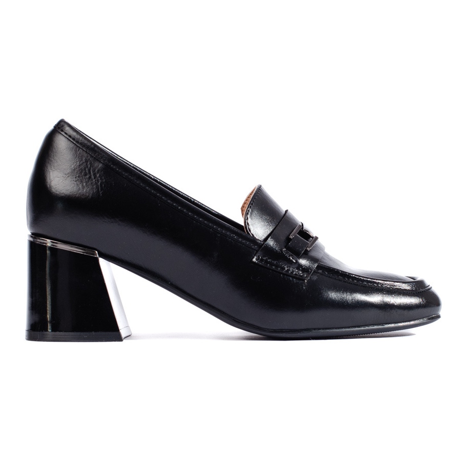 Ženske crne cipele Shelovet odlikuju se pažljivom izradom s pažnjom na svaki detalj. Vanjski materijal je visokokvalitetna ekološka koža koja djeluje izuzetno impresivno i ekološki je prihvatljiva. Unutrašnjost cipela opremljena je uloškom od prirodne kože, što osigurava praktičnost i udobnost korištenja tijekom cijelog dana.