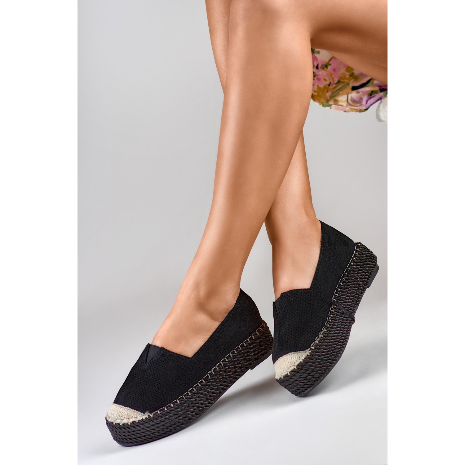 Platforma visoka 4 cm ne samo da dodaje nekoliko centimetara visine, već jamči stabilnost i udobnost tijekom svakodnevnih aktivnosti. Potplat od sintetičkog materijala omogućuje dobro prianjanje, što espadrile čini idealnim izborom za proljetne i ljetne dane.