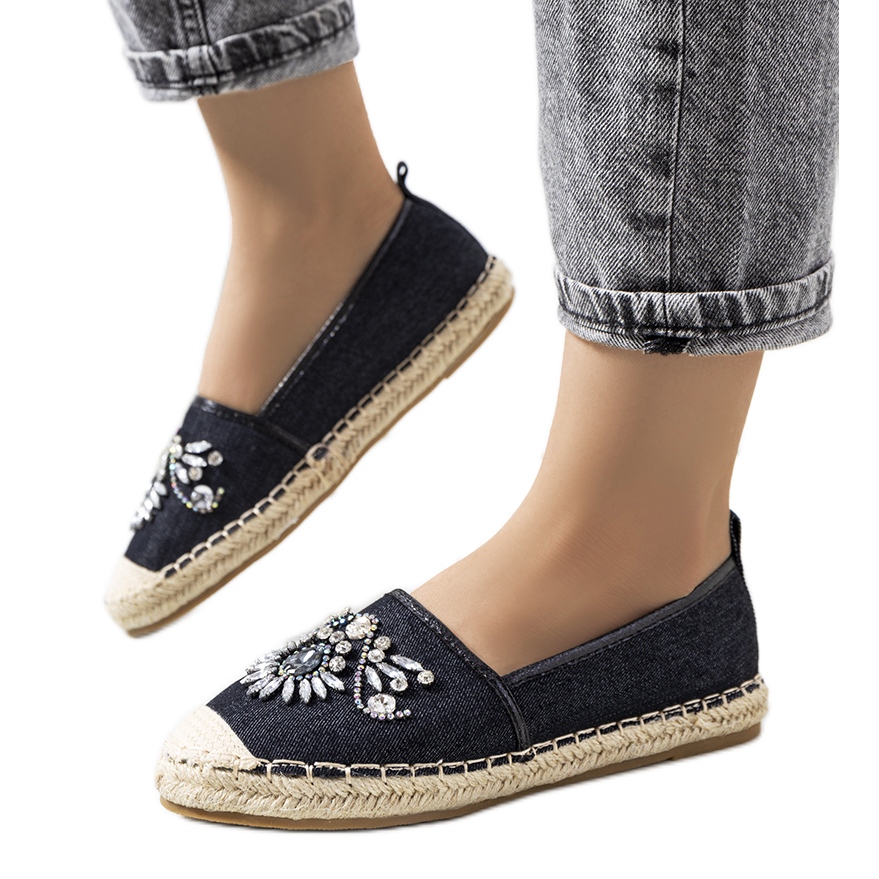Crne espadrile sa kubičnim cirkonima.Blok crna