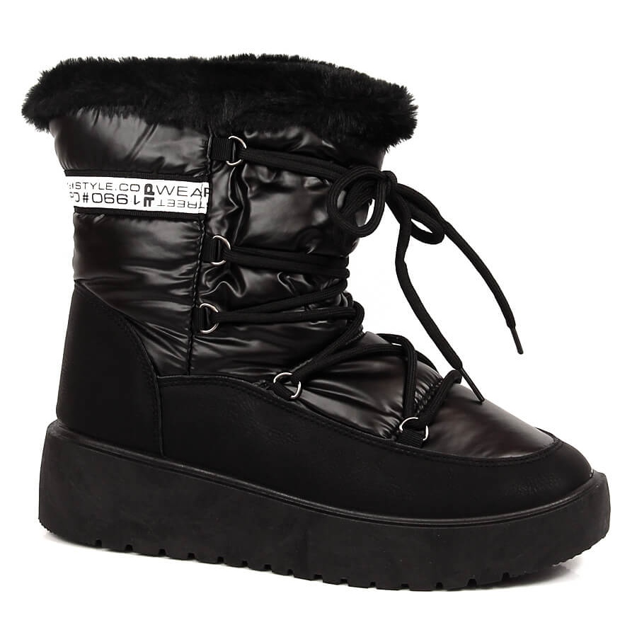 Izrađene od ekološke kože, čizme za snijeg karakterizira elegantna crna boja koja pristaje mnogim zimskim stilovima. U unutrašnjosti je mekano krzno koje savršeno grije stopala, a potplat debljine 5 cm povećava udobnost pri hodu. Visina gornjeg dijela od približno 17 cm i širina gornjeg dijela od približno 37 cm čine da cipele dobro prianjaju uz nogu, pružajući dodatnu izolaciju.
