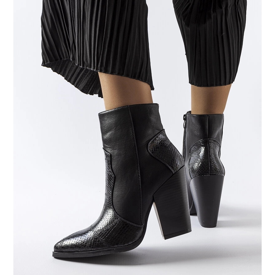Kensley fenomenalne čizme kombiniraju ženski stil s izražajnim kaubojskim karakterom. Visoka peta poput posta (9 cm) i šiljastog nosa optički vijuga noge, a opremljeni gornji dio za gležanj lijepo ih naglašava. Izrađena od visokokvalitetne ekološke kože, u klasičnoj crnoj boji (crna) - savršena za sezonu jesenske - zimske sezone za modne ljubavnike, a istovremeno i udobna rješenja.