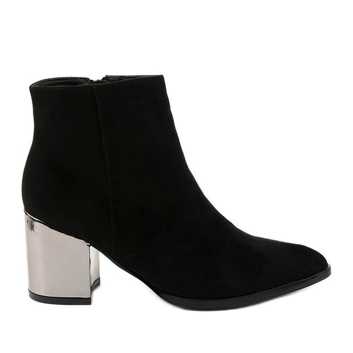 Crne BM Astihus gležnjače na visoku petu savršen su izbor za svaku ženu koja cijeni eleganciju i udobnost. Izrađene od visokokvalitetnog eko antilop kože, ove elegantne cipele spajaju moderan dizajn i funkcionalnost. Šiljati vrh dodaje eleganciju, a ukrasna potpetica visine 7,5 cm osigurava stabilnost i udobnost dugotrajnog nošenja.