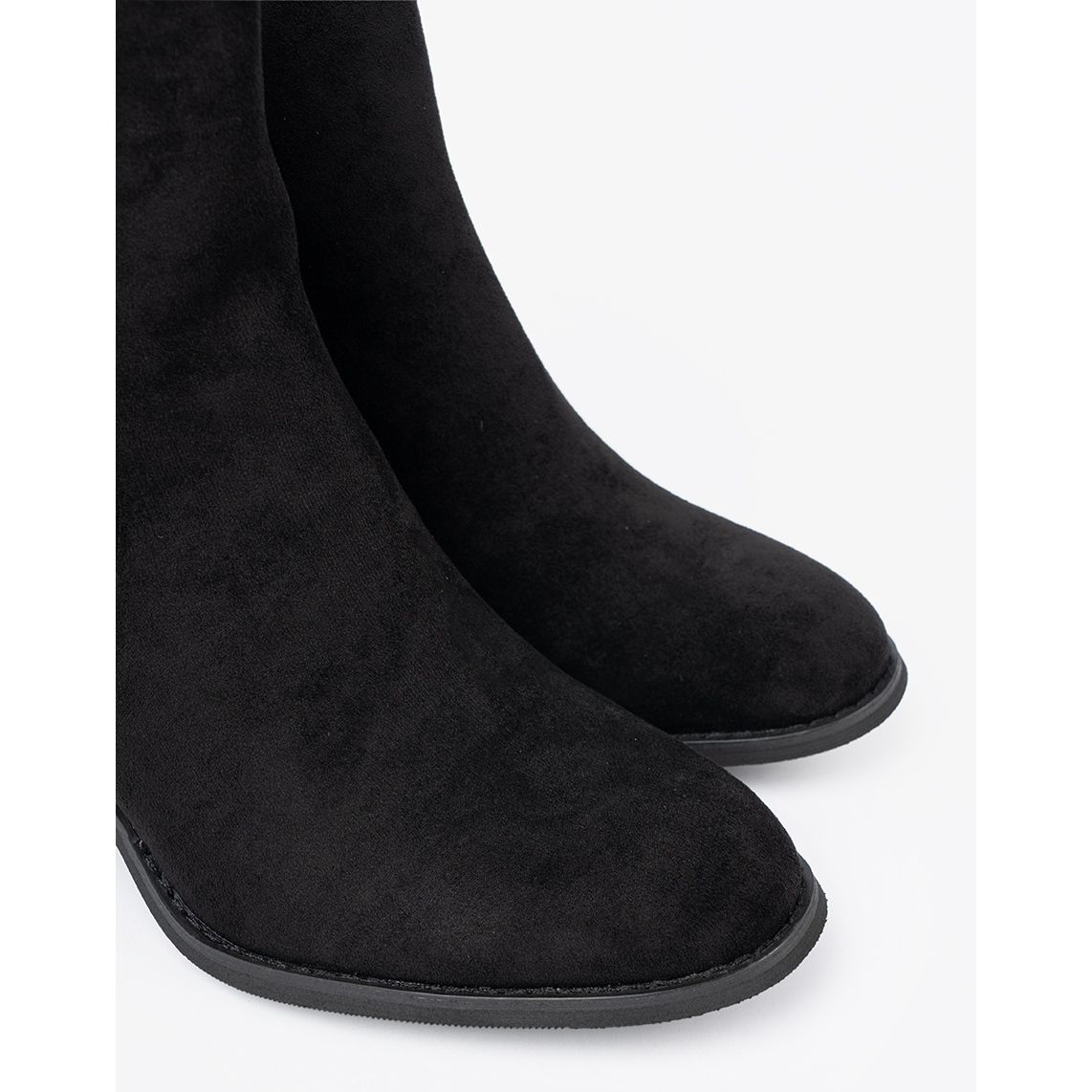 Izrađene od visokokvalitetne imitacijske antilop, čizme izgledaju izuzetno impresivno, a njihova klasična crna boja čini ih bezvremenskim i lako se kombiniraju s raznim odijelima. Okrugli nos i ugrađeni -u peti ne samo da pružaju estetiku, već i udobnost nošenja tijekom dana.