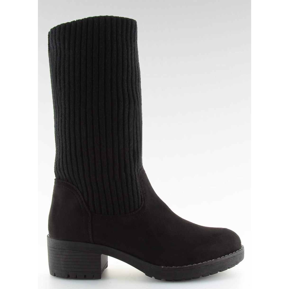 Otkrijte svoje nove omiljene ženske gležnjače s pletenim gornjištem u elegantnoj crnoj boji. Ove jedinstvene čizme sa širokom petom visokom 5 cm spajaju udobnost i stil. Njihov gornji dio od fleksibilne pređe savršeno se prilagođava nozi, što vam omogućuje da ih nosite i ravne i smotane - vi odlučujete kako ih želite nositi!