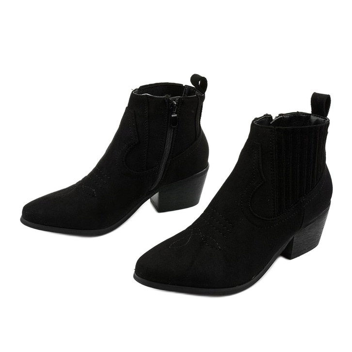 Ove klasične crne čizme opremljene su toplim unutarnjim materijalom, što ih čini savršenim za hladnije dane. Široki gornji dio naglašava prednosti figure, a zaobljeni vrh dodaje suptilnost. Nevjerojatan detalj je uzorak izvezen na gornjem dijelu, koji cipelama daje originalan karakter.