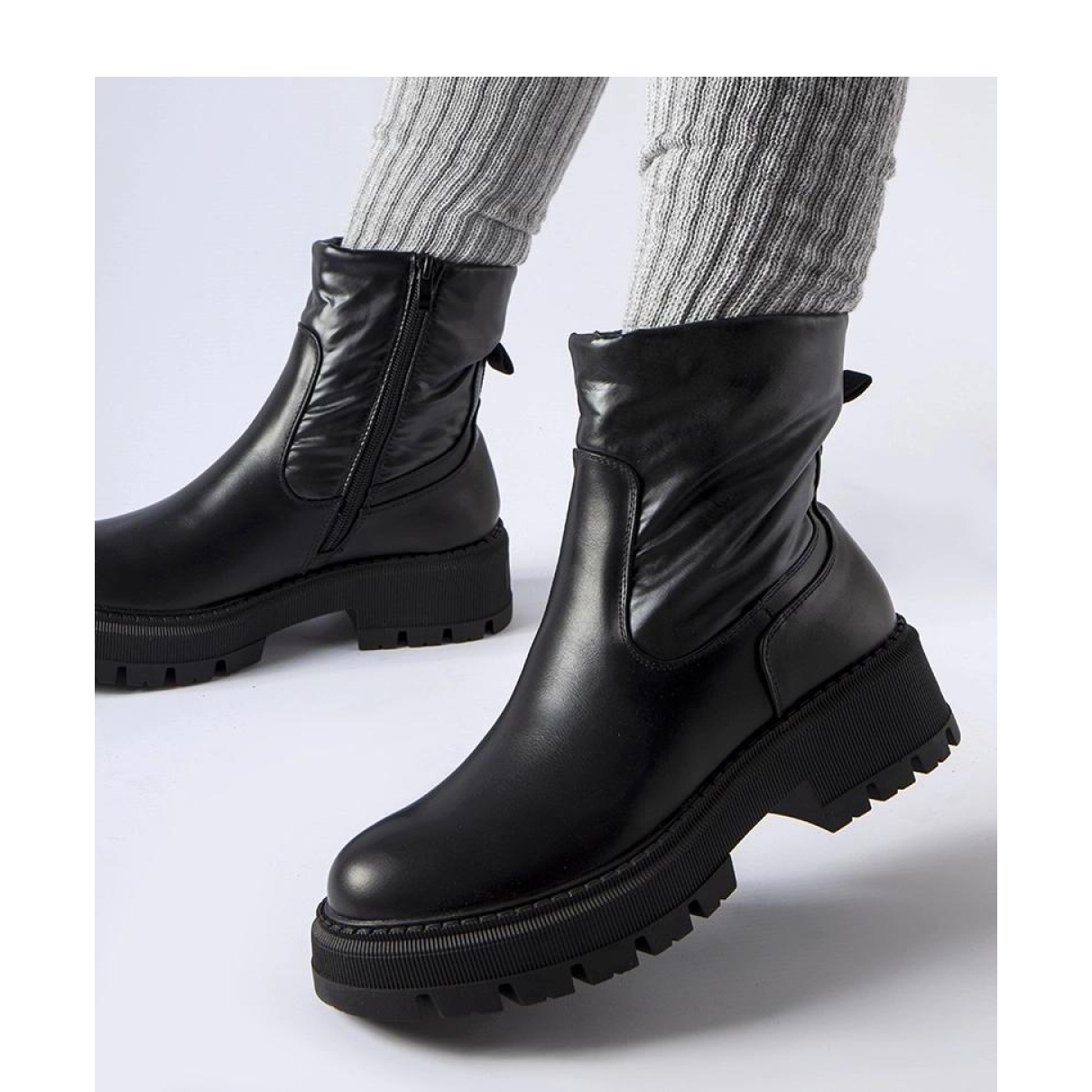 Zahvaljujući pričvršćivanju patentnih zatvarača, stavljanju i skidanju čizama, to je jednostavno i brzo, a klasična crna boja olakšava ih kombiniranje s raznim stilu - od svakodnevnog, ležernog izgleda do elegantnih večernjih kreacija. Visoki gornji dio daje im karakter, a okrugli nos naglašava ženski stil. Čizme su također izolirane, što ih čini odličnim izborom za hladnije dane.