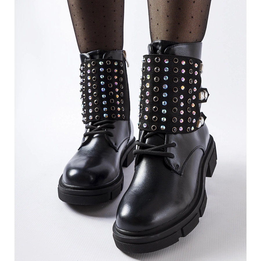 Crne čizme ukrašene centama cirkona - elegancija i udobnost svaki dan