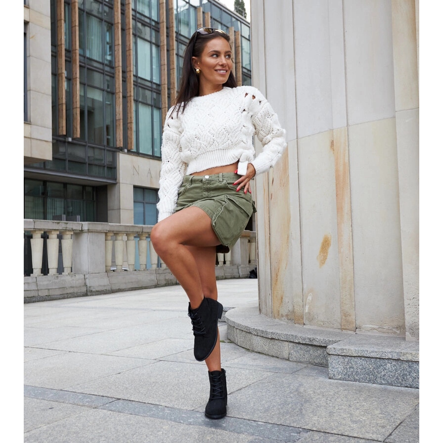 Elegantne i udobne čizme koje će dodati sjaj u svakoj zimskoj stilizaciji. Okrugli nos daje im suptilnost, a visoki gornji doseg gležnja (15 cm) pruža zaštitu i udobnost tijekom hladnijih dana. Dekorativni rhinestones privlače pažnju, naglašavajući jedinstvenu prirodu obuće - idealne za povremene setove i za večernje izlete.