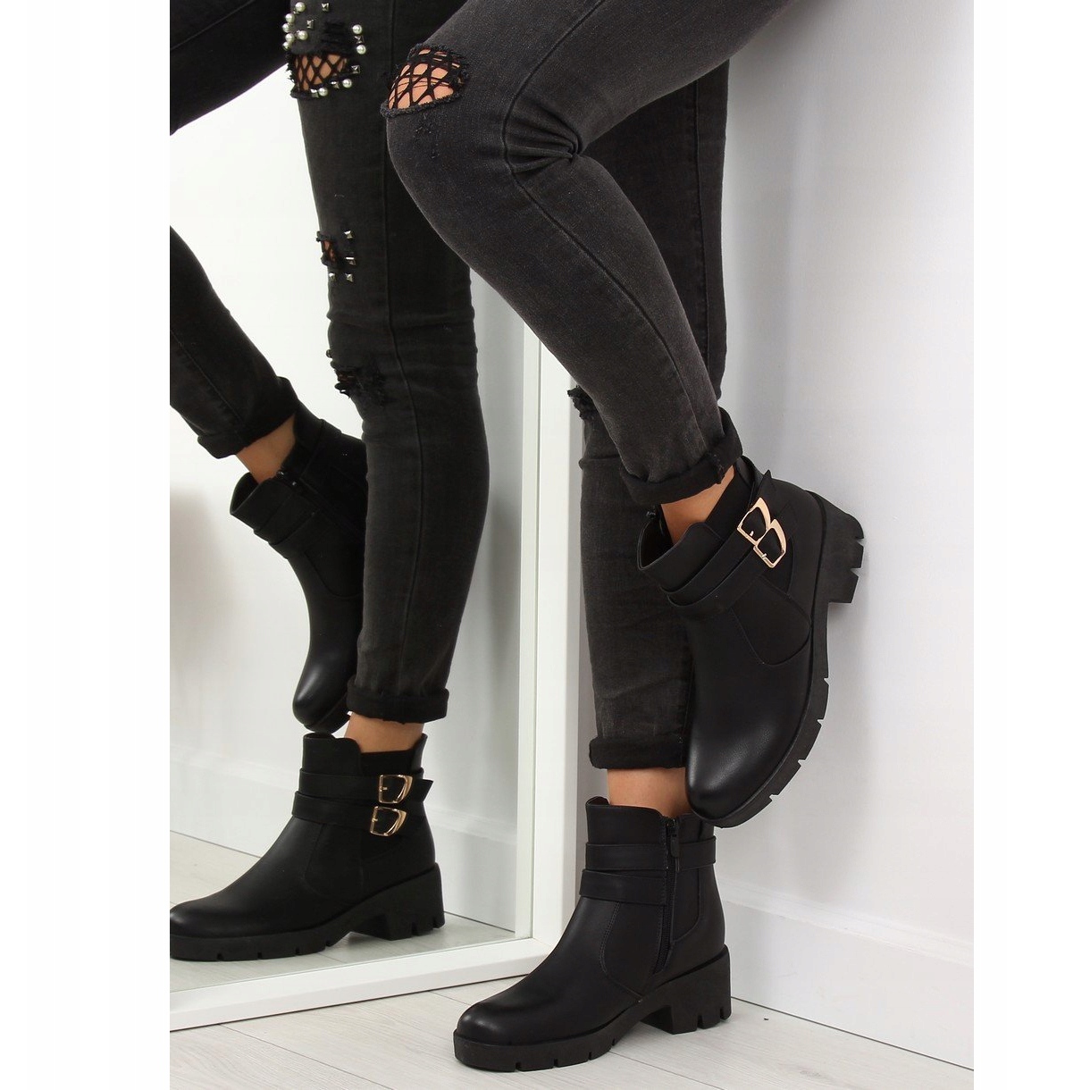 Nudeći stabilnost zahvaljujući širokoj peti od 5 cm i platformi od 2 cm, gležnjače osiguravaju udobnost čak i kada se nose dulje vrijeme. Deblji potplat u kombinaciji s klasičnom crnom čini ove cipele savršenim dodatkom mnogim stilovima. Dodatno, zlatne kopče daju im pomalo rock karakter, što će se svakako svidjeti ljubiteljima ekspresivnog stila.