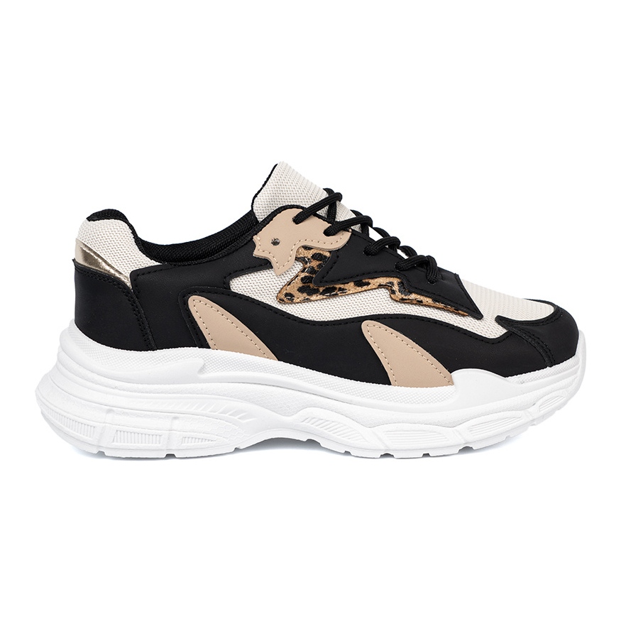 Predstavljamo crne i bež ženske tenisice iz Shelvta, koji kombiniraju sportski lik s modnim modnim stilom. Savršene svaki dan, ove posebne sportske cipele savršeno se uklapaju u trendove za proljetnu i ljetnu sezonu, kao i jesen.