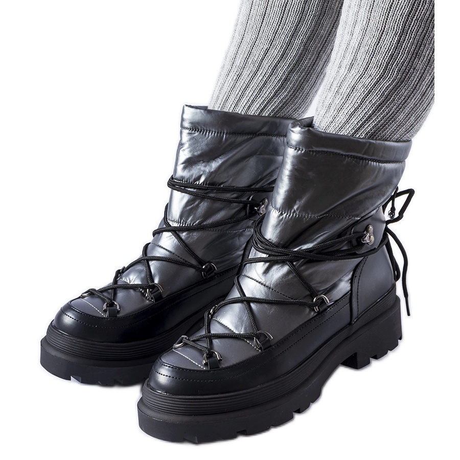 Detalji: Crne i sive Eagleville čizme za snijeg s manžetom siva
