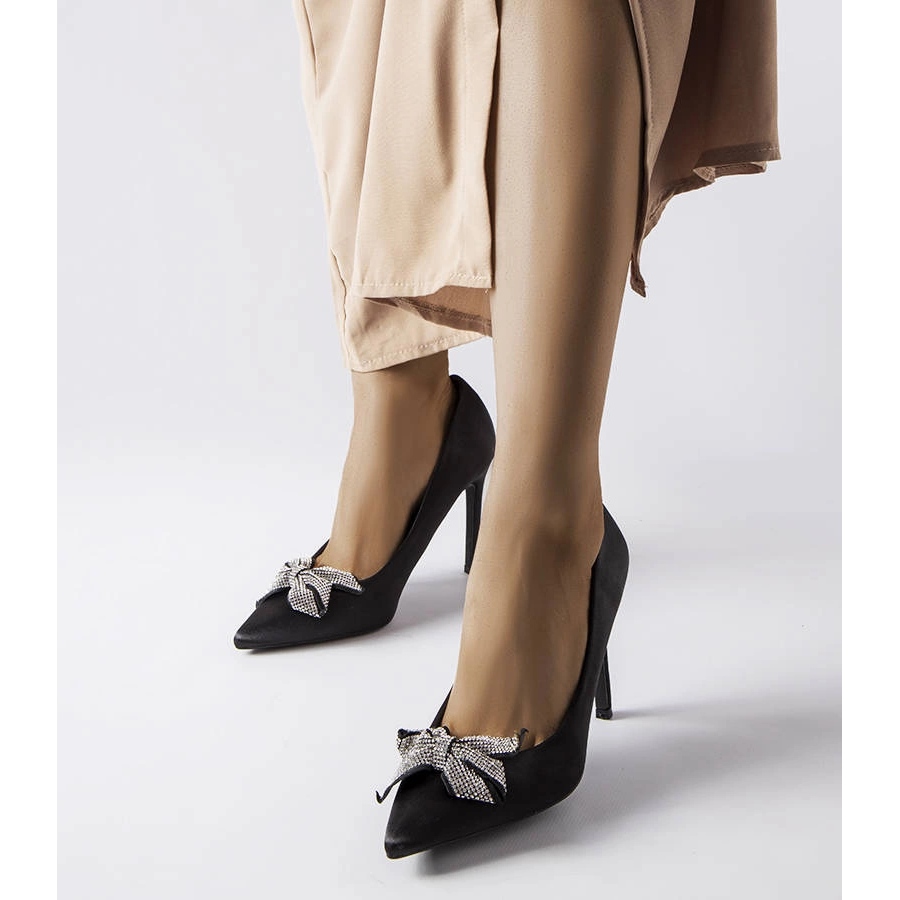 Crne visoke potpetice sa satenskim završetkom s lukom - elegancijom i stilom za svaku priliku