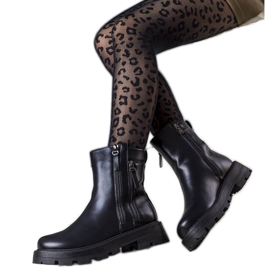 Crne trajektne čizme - stilske, tople i praktične. Model koji se uklapa u najtoplije trendove jesenske/zimske sezone: masivna, izdržljiva potplata i bezvremenska, crna ekološka koža stvara izgled i moderno i otporno na loše vrijeme. Unutrašnjost je obložena mekim krznom, koje pruža udobnost i ugodno zagrijavanje u hladnijim danima.