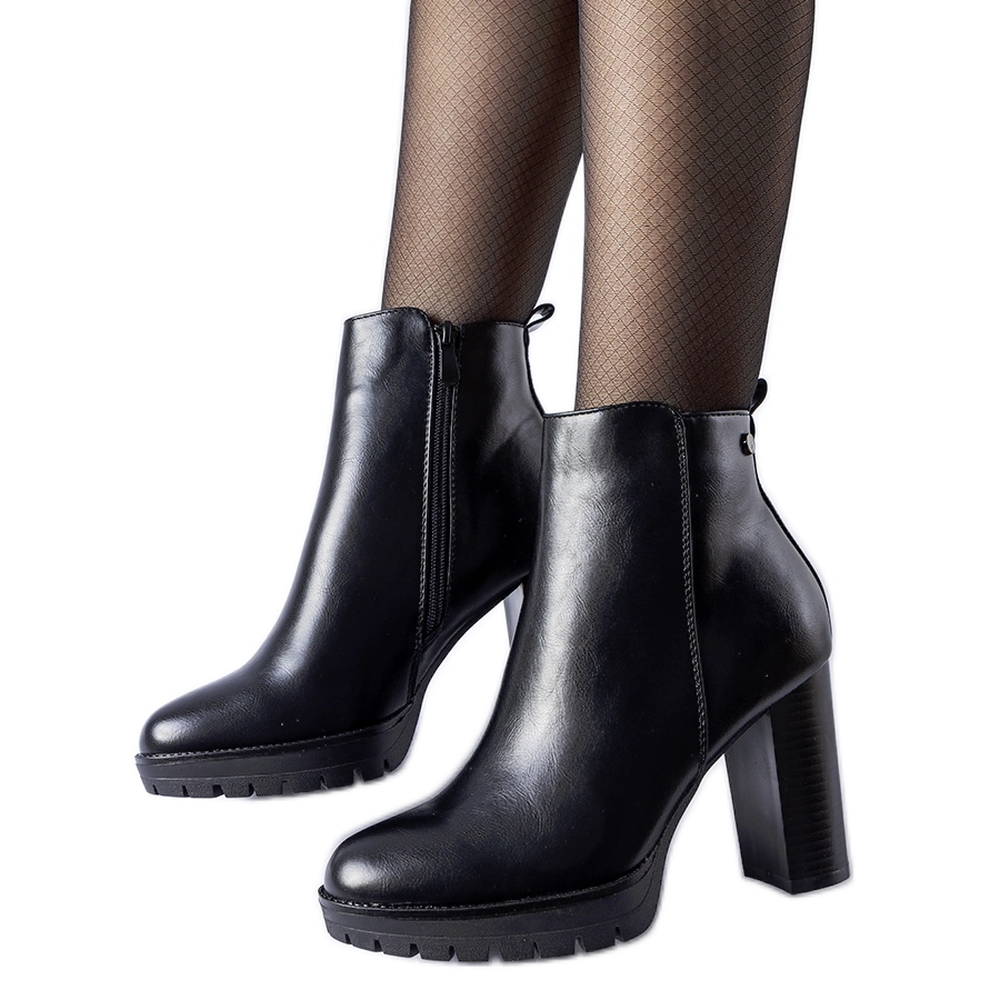 Klasične i istodobno moderne - crne mulinske čizme (model UK157p) prijedlog je žena koje cijene stil i udobnost. Nos od badema daje im vitko, a visoka posta (9 cm) suptilno proširuje lik, održavajući stabilnost tijekom hodanja. Zahvaljujući toplom zagrijavanju, oni će biti savršeni u jesen i zimskoj sezoni.