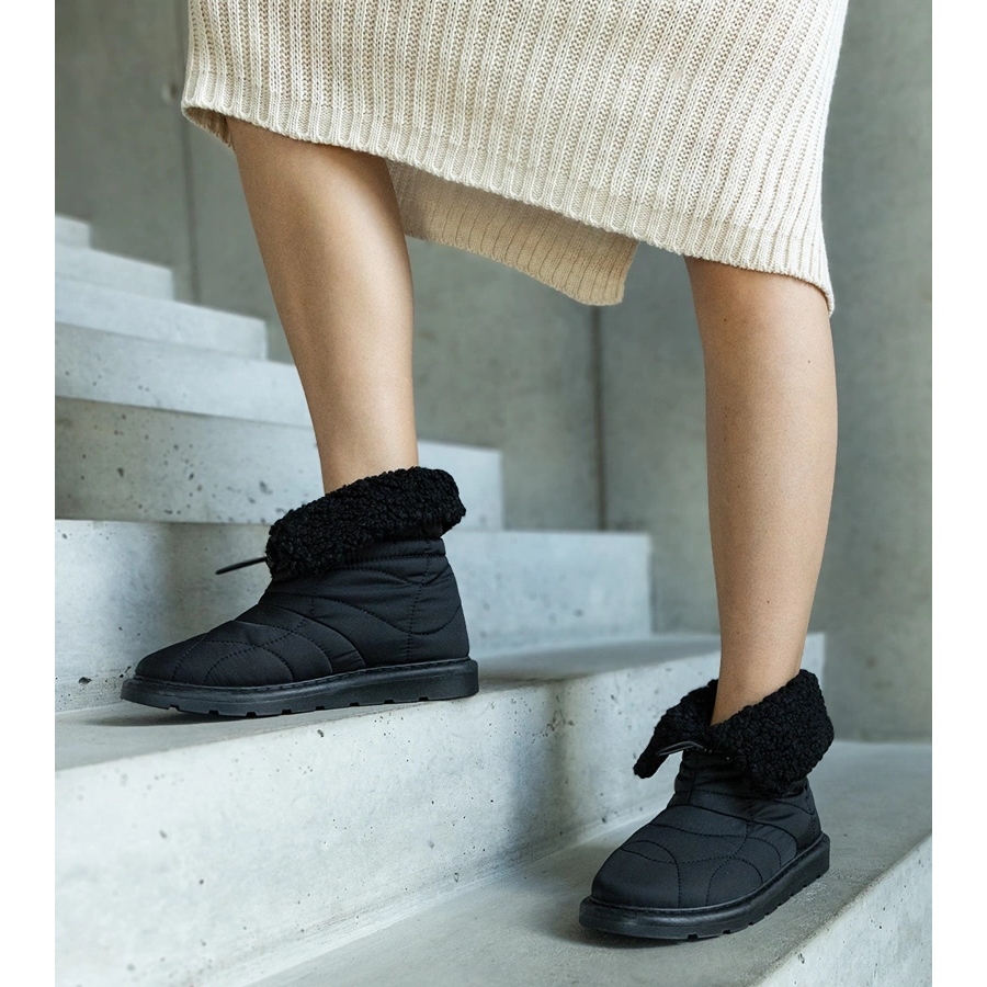 Snježne čizme izolirane su futurističkim materijalom koji jamči toplinu i udobnost, čak i u najhladnijim danima. Visoka platforma s visinom od 3,5 cm daje im moderan izgled, a istovremeno utječe na praktičnost nošenja cijeli dan. Model 6433 iz kolekcije jeseni/zima u univerzalnoj crnoj boji savršeno ide s mnogim stilovima, zahvaljujući koje ih lako možete uskladiti sa svojim svakodnevnim izgledom.
