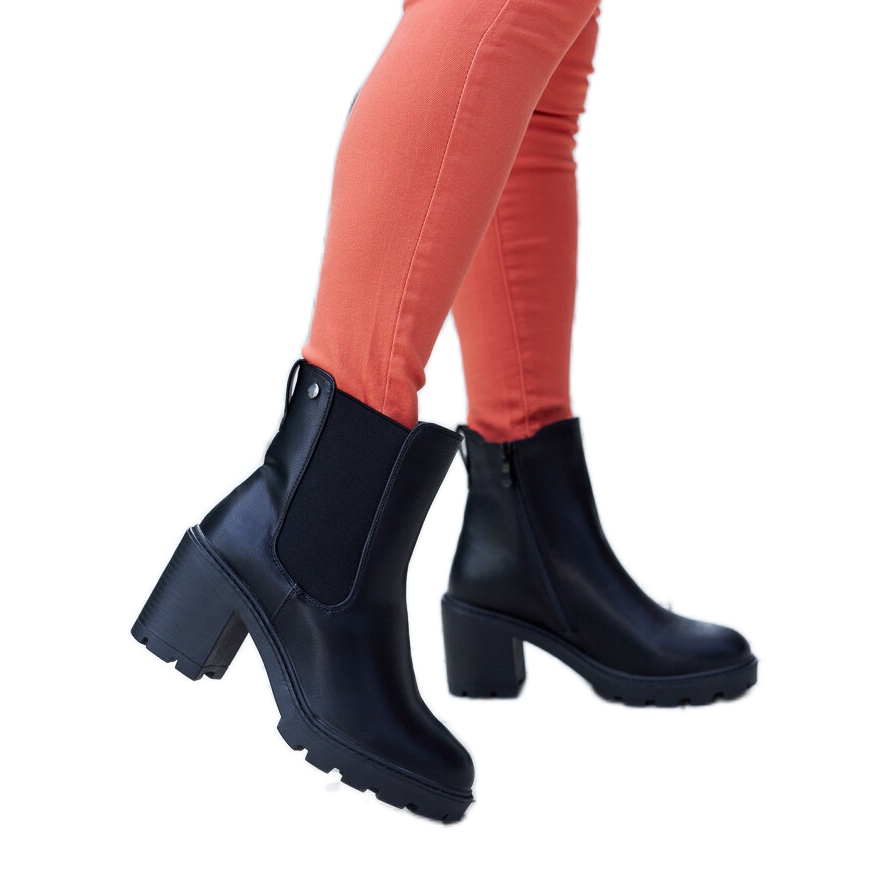 Crne Caio čizme su izolirani, ženstveni model na stabilnom postu, koji kombinira klasični rez s modernim materijalima. Izrađene od organske kože (crne pu) s toplim umetkom od tkanine, radit će kao elegantna i praktična obuća za sezonu jesen -zime.