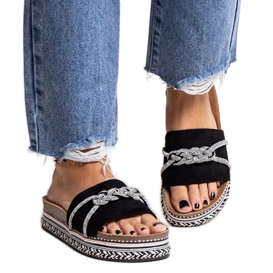 Crne japanke ukrašene kamilijanskim cirkonima crna