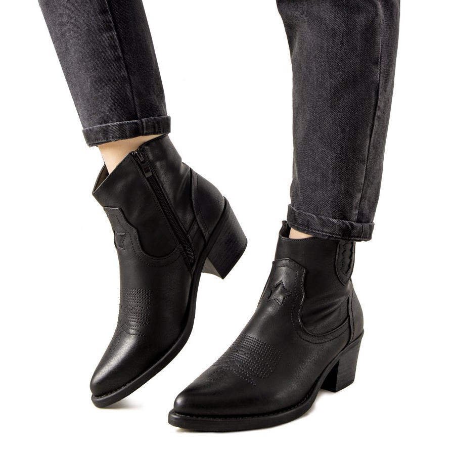 Pojedinosti: Crne kaubojske čizme s izvezenim uzorkom Mustgrow crna