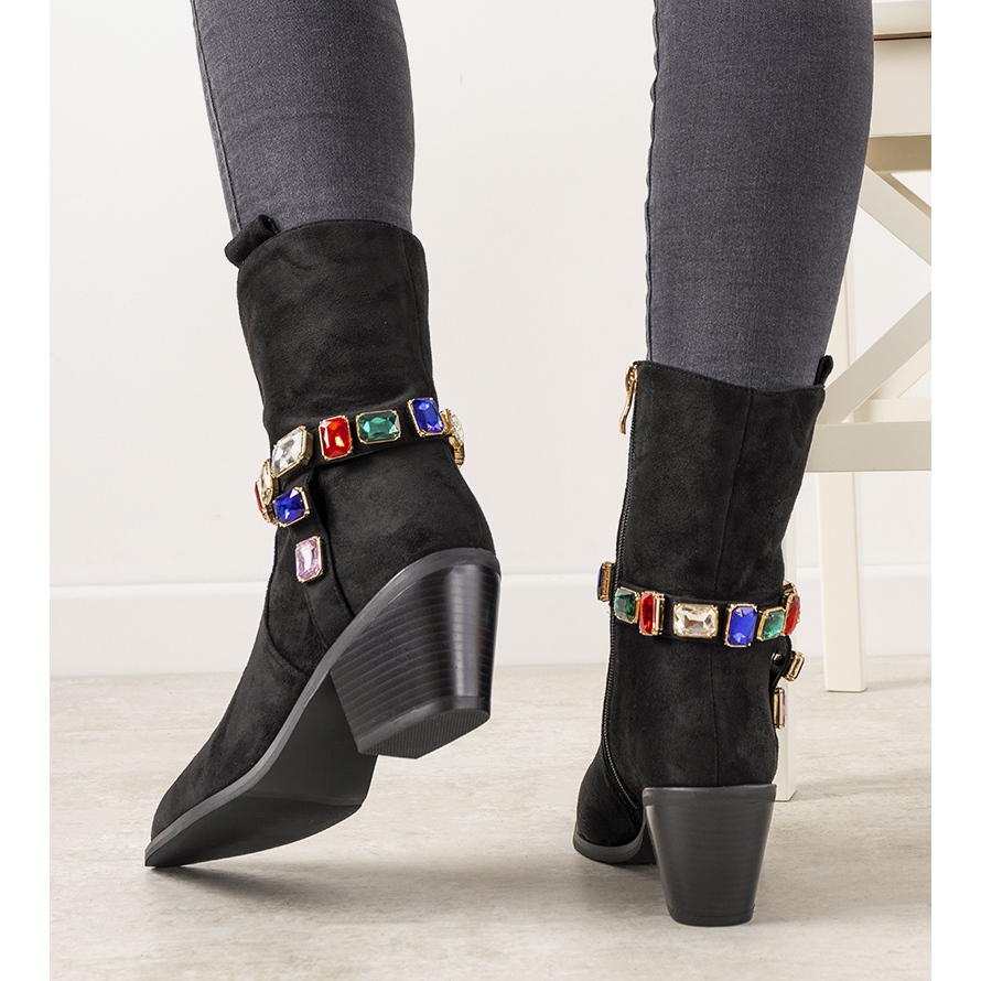 Pojedinosti: Crne kaubojske čizme sa šarenim kamenjem Mabella crna